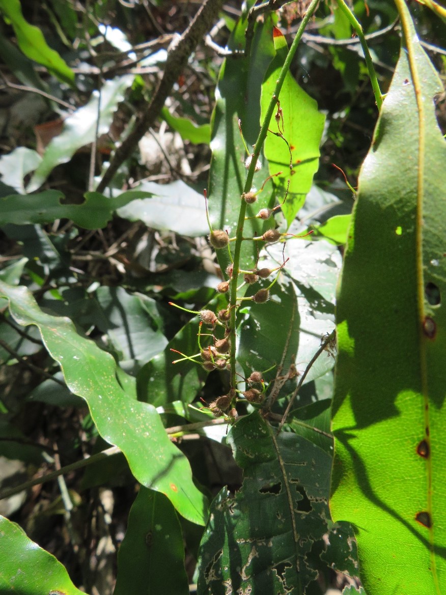 On the 19th October 2020, the intrepid naturalists explored further north into potential Macadamia jansenii habitat. This is rugged territory, and slow going when identifying plants on the way, but they were rewarded by finding previously unrecorded trees of this rare species. Of particular interest was a small “grove” of M. jansenii, in marked contrast to other known sites where trees are scattered at intervals through the forest.